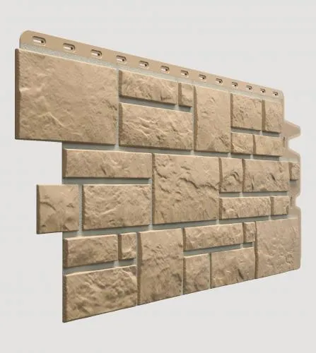Оливковый цокольный сайдинг при использовании на фундаменте зданий или при облицовке ограждений, будет смотреться идентично натуральному фундаменту, созданному из камня. Благодаря тому, что все составляющие детали на панели из камней выложены как лицевой стороной, так и в торцевом положении, при этом их размеры различны.