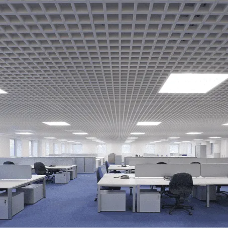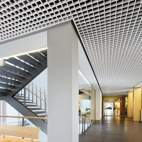 Решетчатая структура потолка Грильято позволяет варьировать показатели звукопоглощения, снижать уровень шума и создавать комфортный фон в помещении.