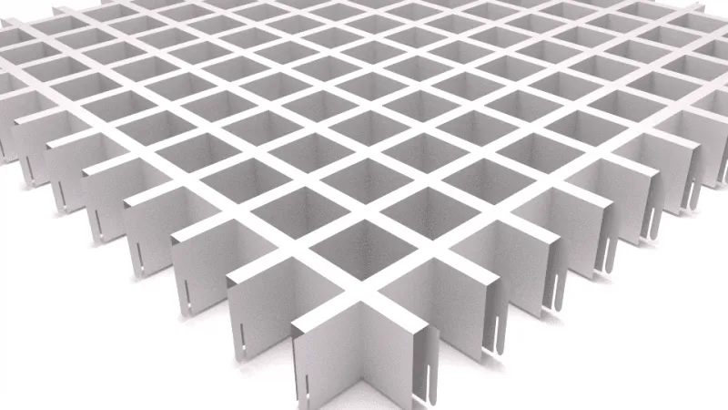 Грильято СТАНДАРТ – классическая модель подвесного ячеистого потолка. Благодаря решетчатой конструкции со стандартной ячейкой создается ощущение идеальной пропорциональности, целостности и непрерывности потолочного пространства.