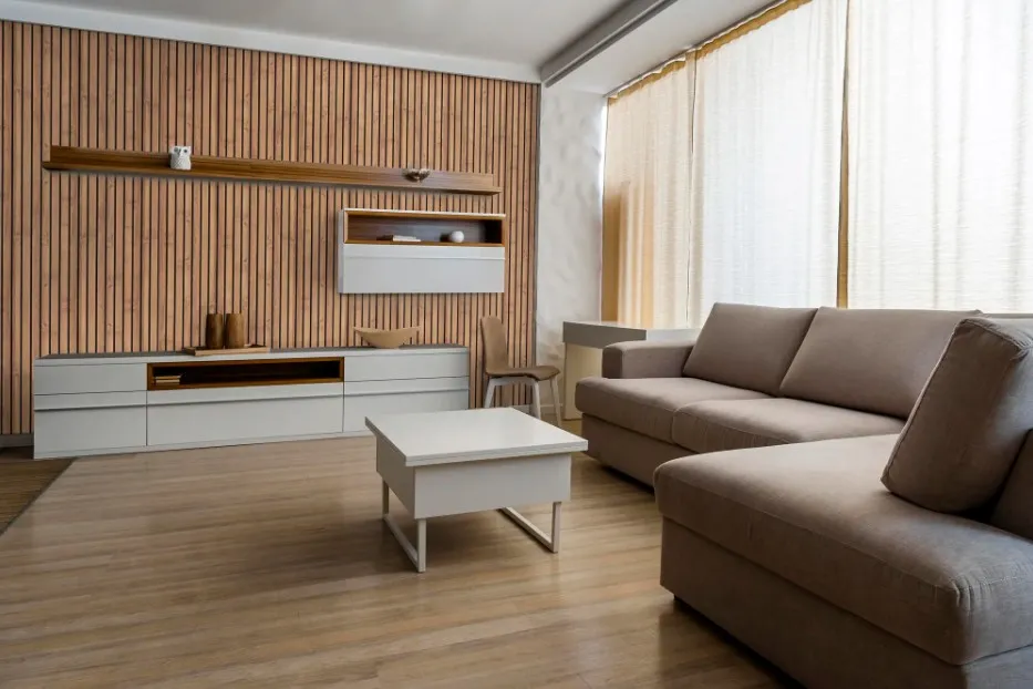 Рустованные панели с декоративным покрытием, имитирующим структуру дерева, натуральную доску, рейку, изготавливаются из природного материала – МДФ толщиной 6 мм.